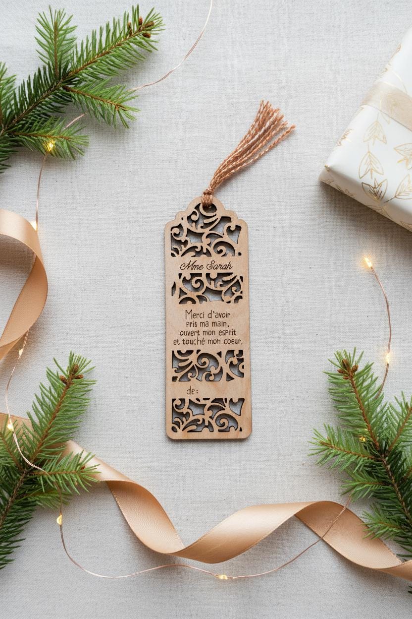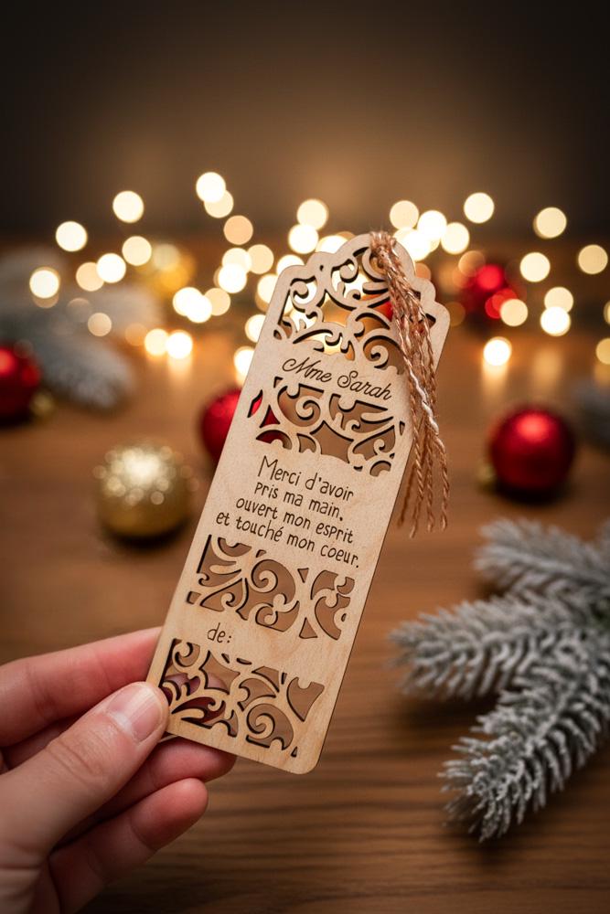 They guided, inspired, and supported your child throughout the year. Give them a keepsake they will treasure: a maple wood bookmark engraved with their name and a touching message, perfect for Christmas.