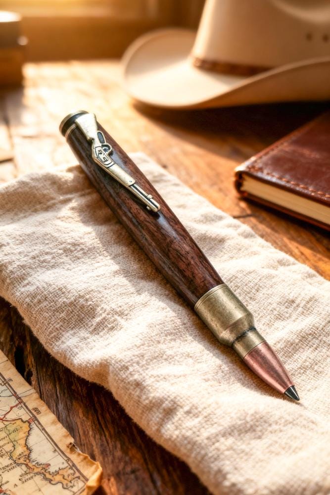 Each stroke feels like a nod to craftsmanship, independence, and timeless Western pride. This hand-turned walnut bullet pen isn’t just a writing tool — it’s a keepsake built for those who appreciate grit, elegance, and heritage.