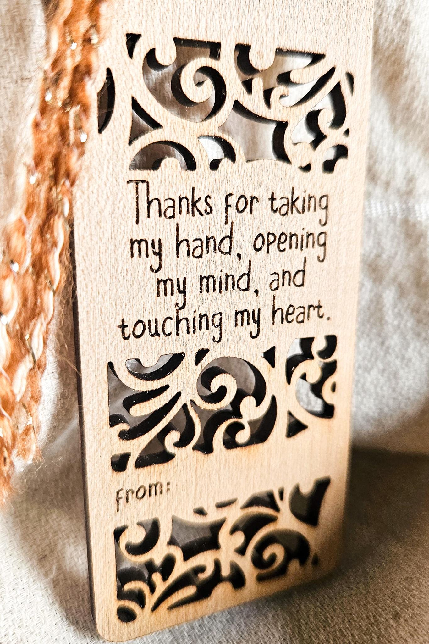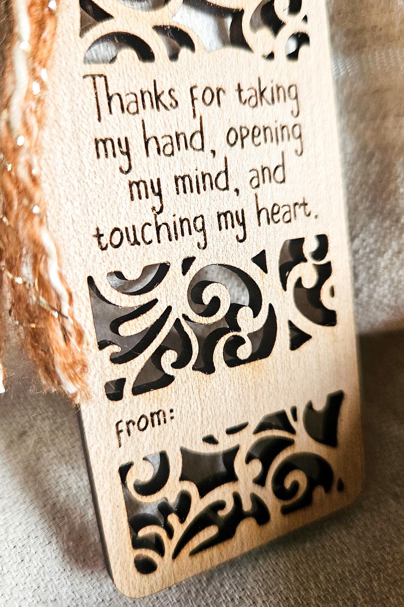 - Engraved message: *“Thanks for taking my hand, opening my mind, and touching my heart.”*