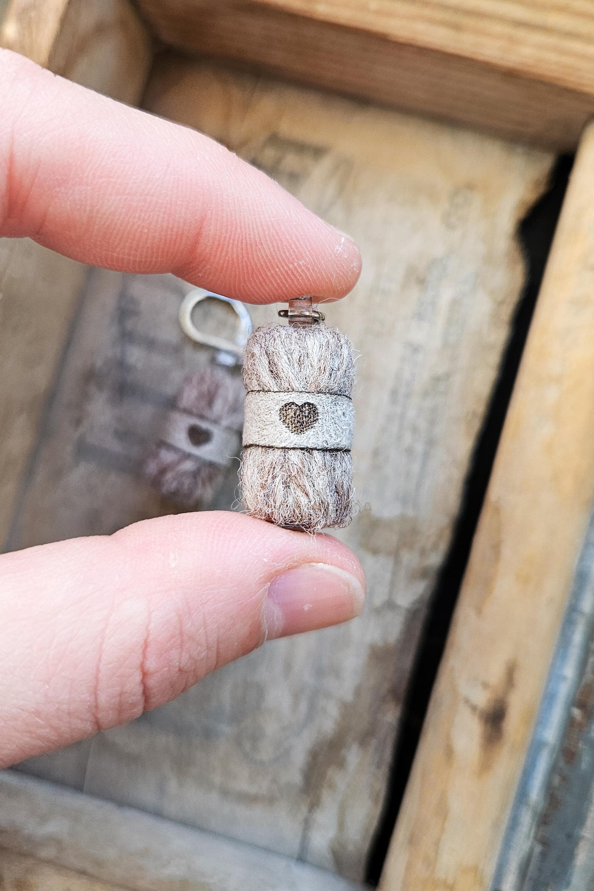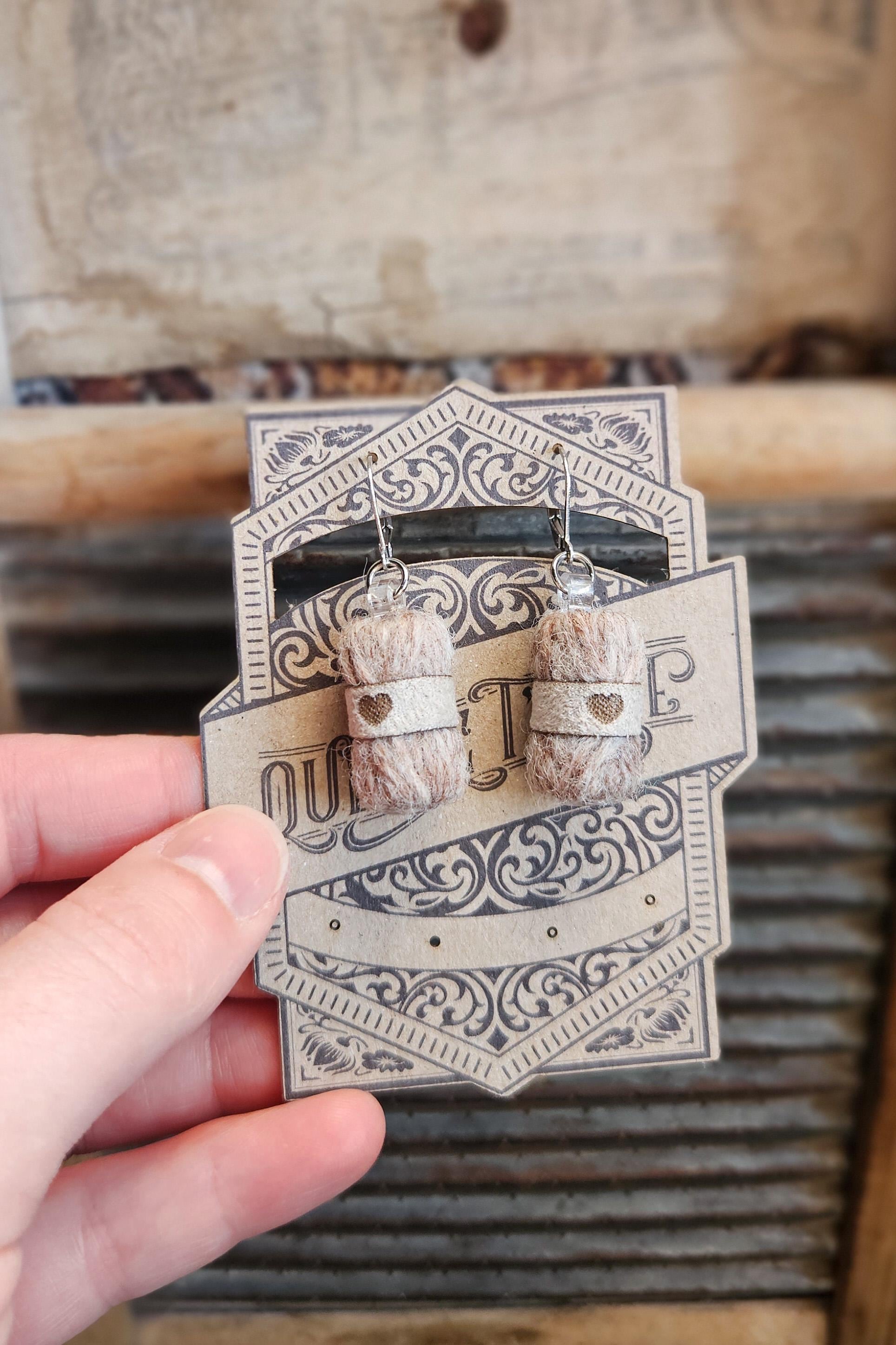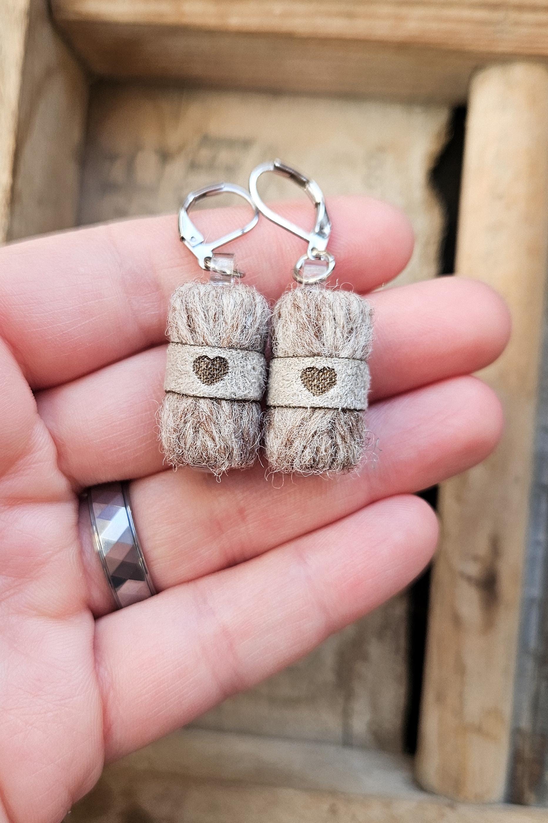 Each pair is handcrafted by me in Québec, Canada, using pure wool and stainless steel hooks. The little suede band is made from recycled faux suede, laser-cut and engraved with a tiny heart — because love is part of the design.