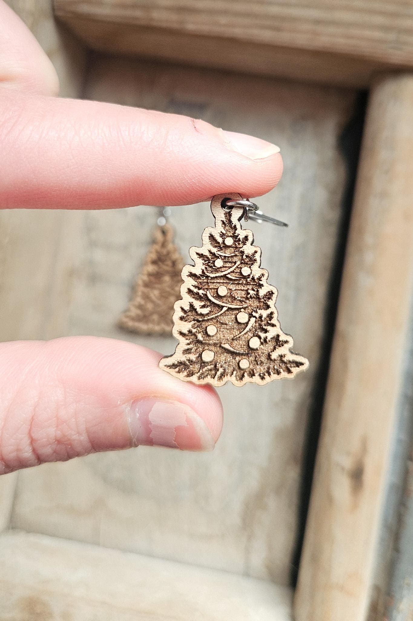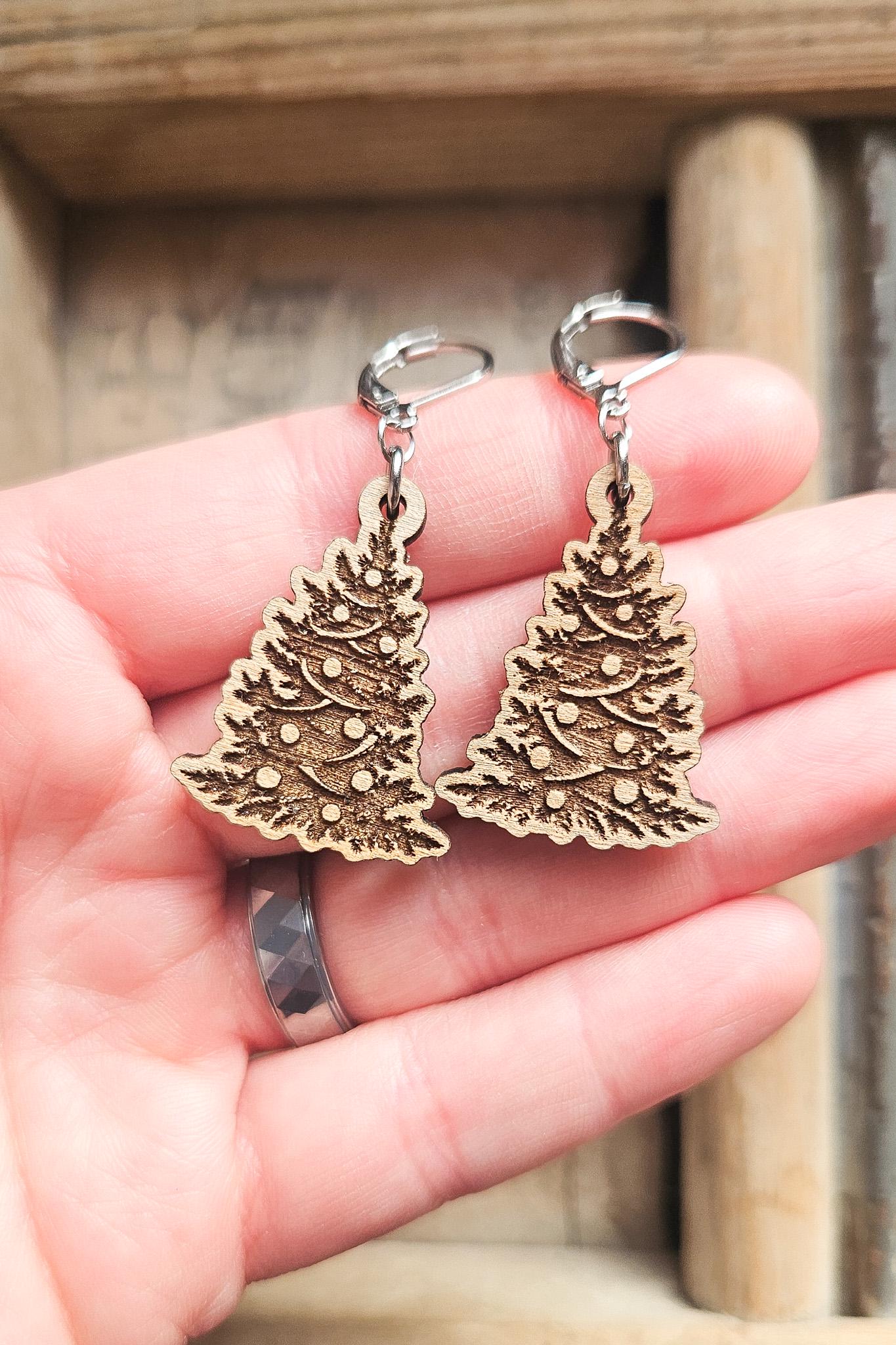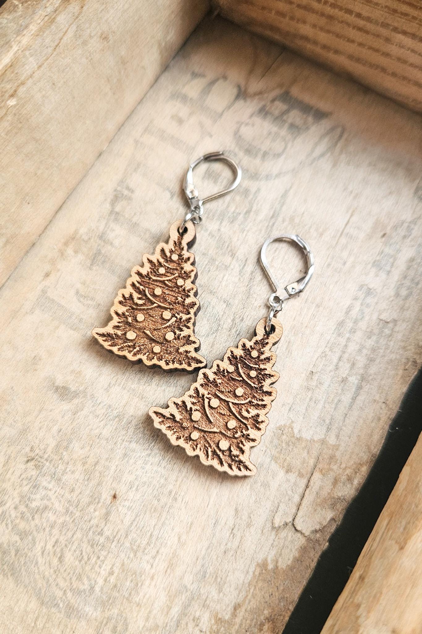 If you love the cozy, woodsy feeling of the holidays, these Christmas tree earrings are your new festive favorite. Each pair is laser-cut from sustainable maple wood and detailed with an engraved tree design that captures the magic of the season—lightweight, timeless, and joyfully handcrafted.