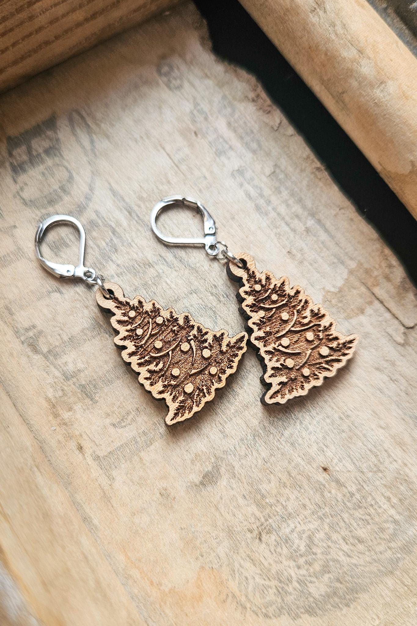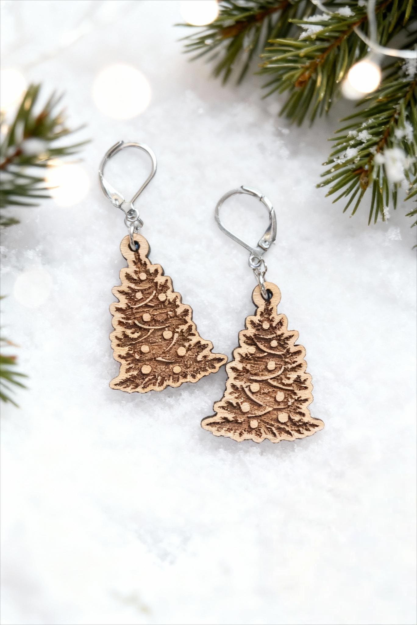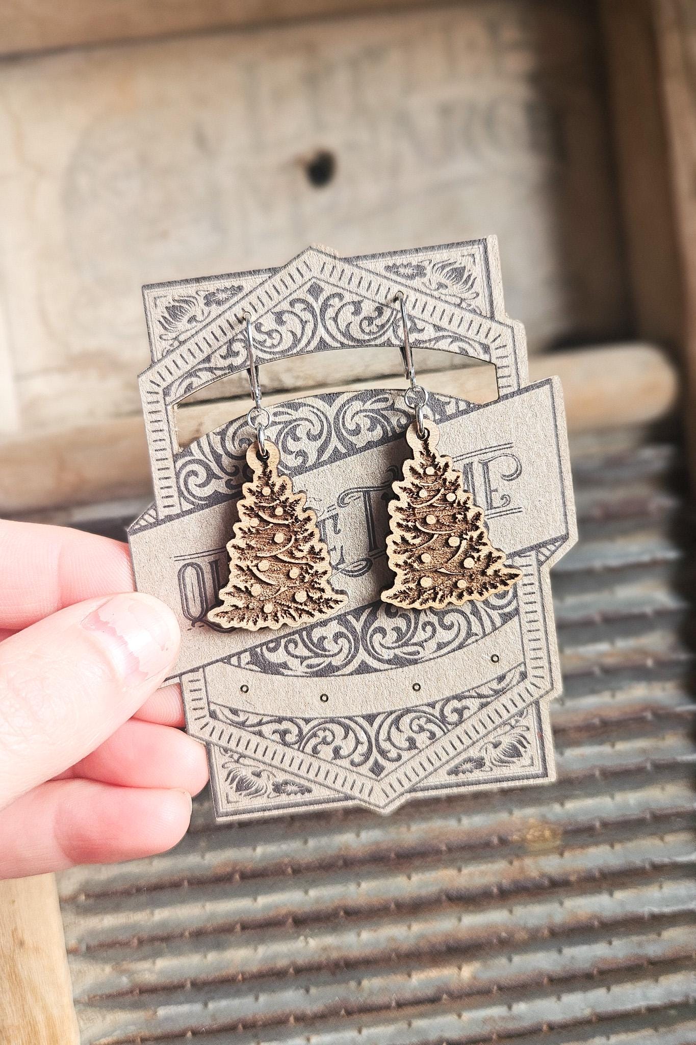 If you love the cozy, woodsy feeling of the holidays, these Christmas tree earrings are your new festive favorite. Each pair is laser-cut from sustainable maple wood and detailed with an engraved tree design that captures the magic of the season—lightweight, timeless, and joyfully handcrafted.