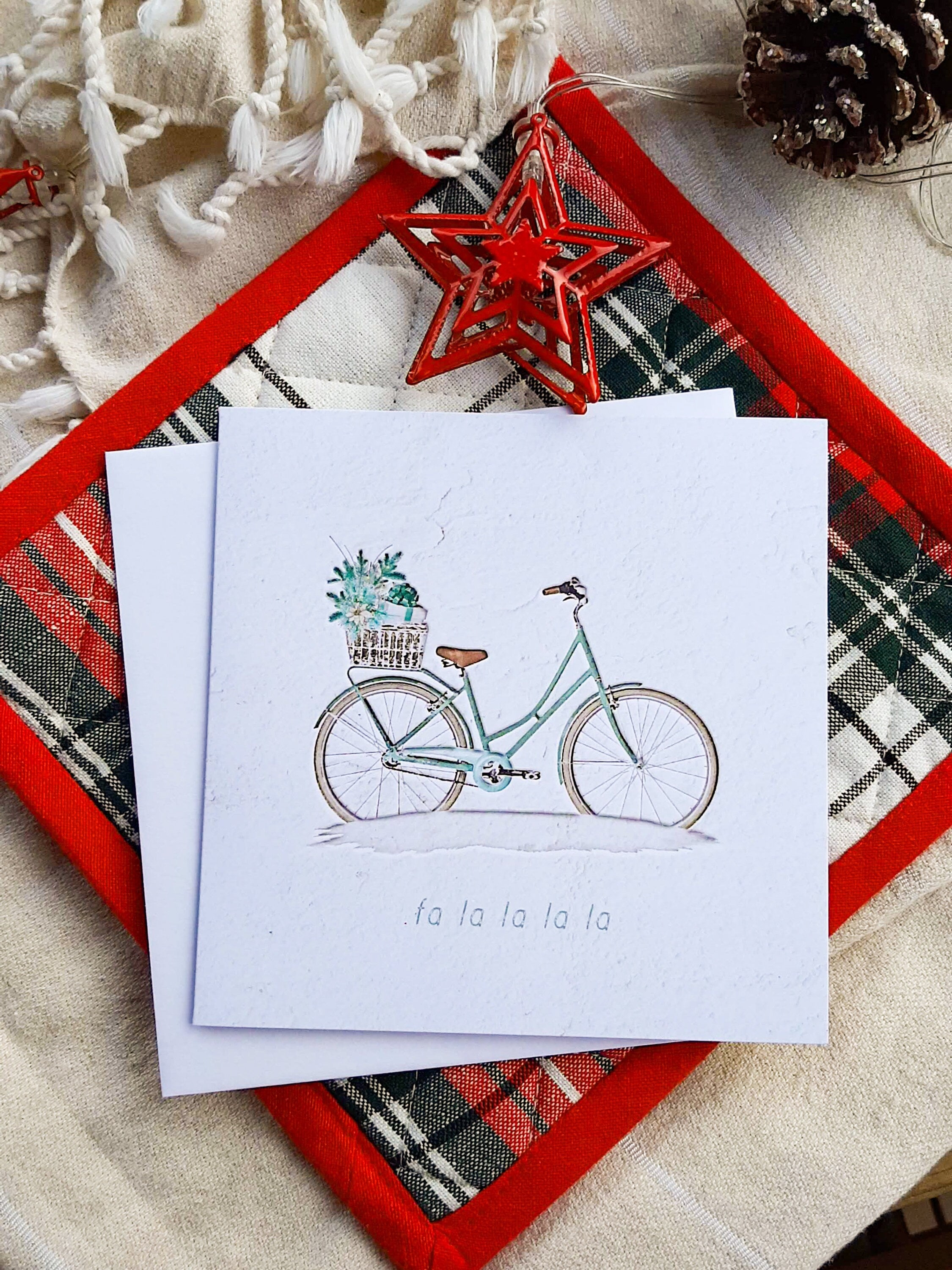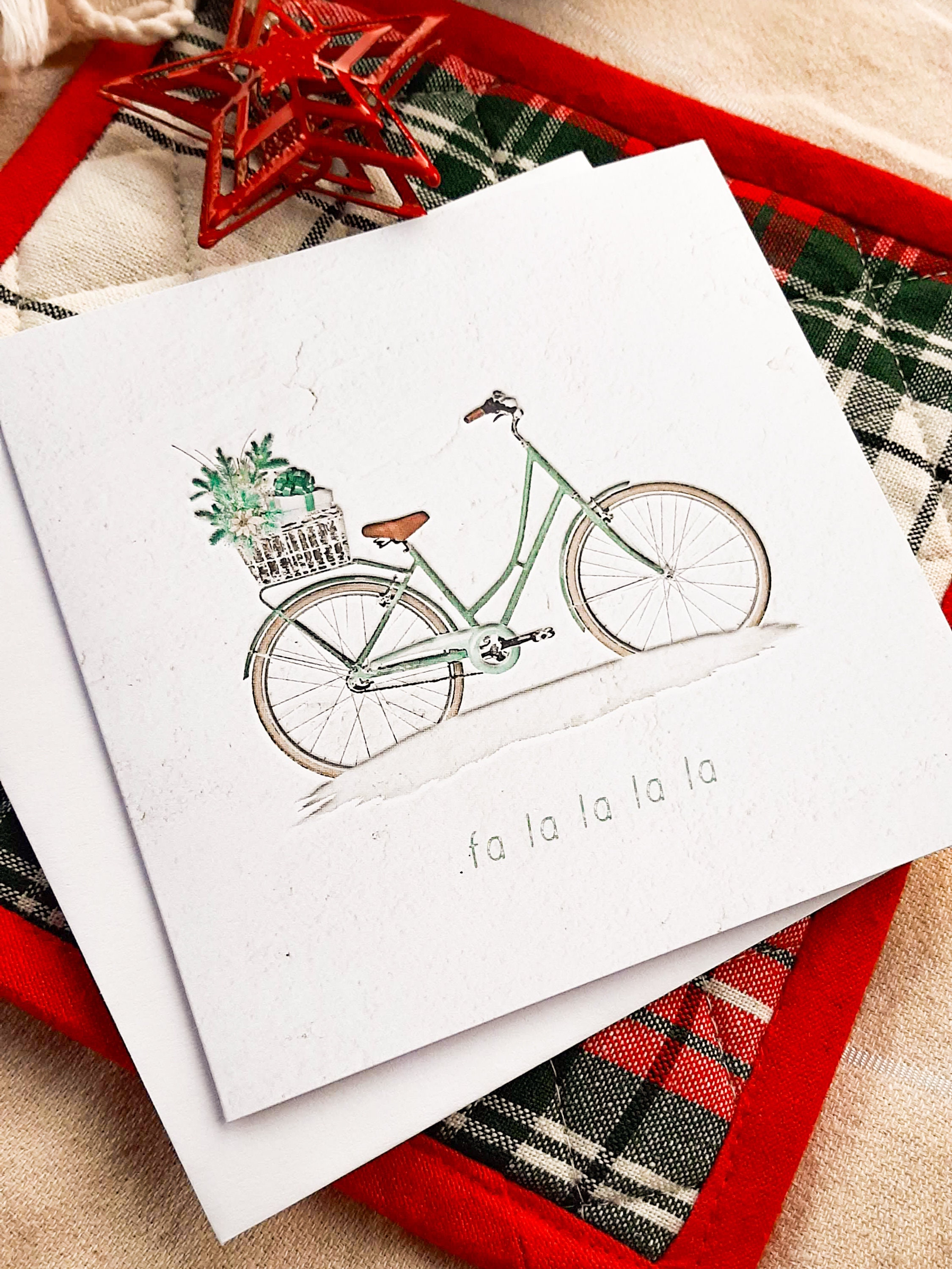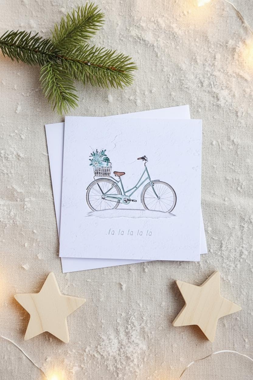 For the minimalist who loves quiet moments and soft magic, this fa la la la la bicycle Christmas card captures the peaceful side of the holidays. Simple, stylish, and cozy—perfect for slow mornings, twinkly lights, and warm tea.